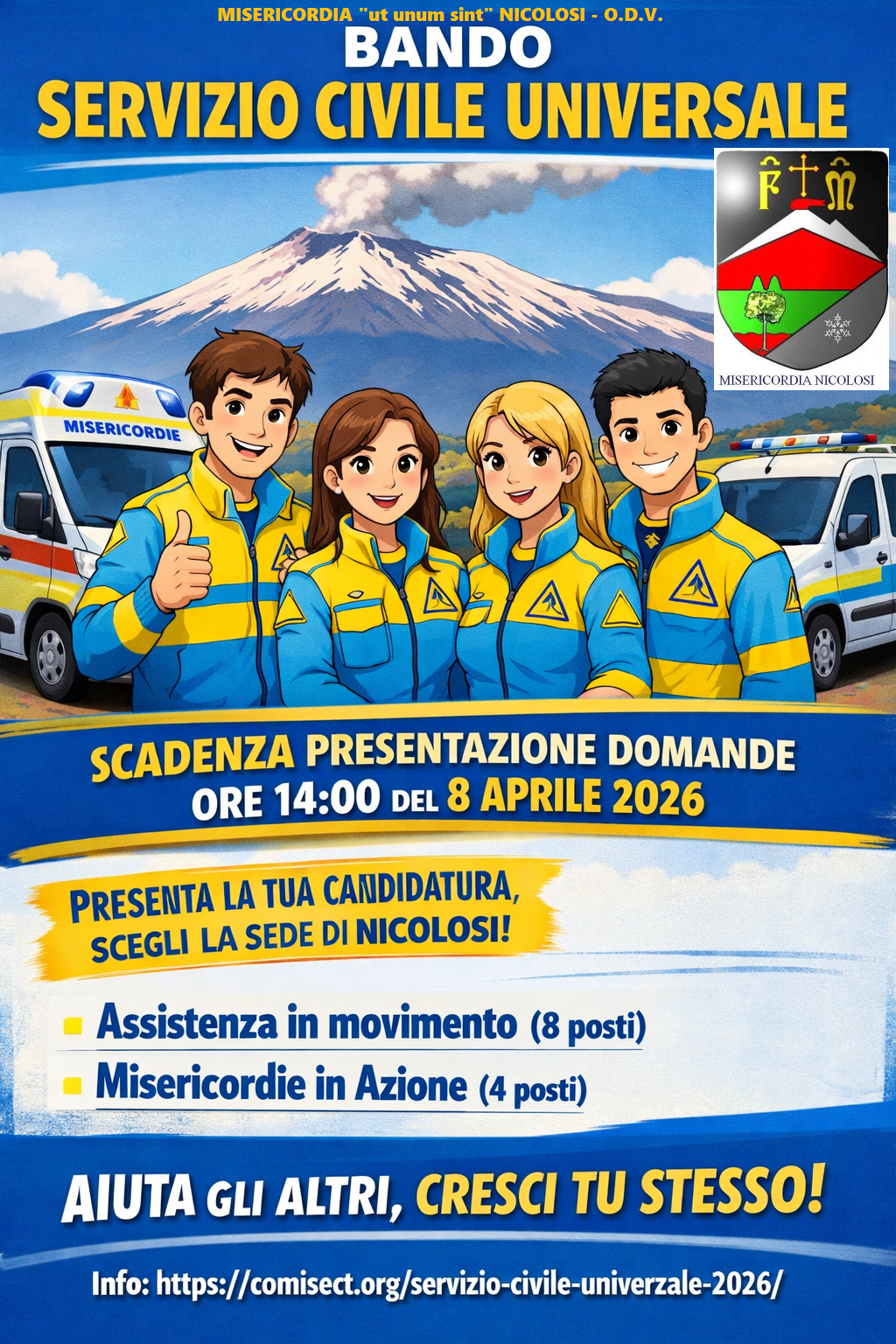 La sintesi dei progetti si trova sul sito istituzionali dell’Ente https://comisect.org/servizio-civile-universale-2026/ dove è possibile reperire tutte le informazioni necessarie per presentare domanda di partecipazione. Gli aspiranti operatori volontari devono presentare la domanda di partecipazione esclusivamente attraverso la piattaforma Domanda on Line (DOL) raggiungibile tramite PC, tablet e smartphone all’indirizzo https://domandaonline.serviziocivile.it. Per accedere ai servizi di compilazione e presentazione della domanda sulla piattaforma DOL occorre che il candidato sia riconosciuto dal sistema. I cittadini italiani residenti in Italia o all’estero possono accedervi tramite Carta di Identità Elettronica (CIE). Per la presentazione della Domanda on-line di Servizio civile occorrono credenziali CIE di livello di sicurezza 2. È consentito, altresì, l’accesso tramite il Sistema Pubblico di Identità Digitale (SPID). Per la presentazione della Domanda on-line di Servizio civile occorrono credenziali SPID di livello di sicurezza 2